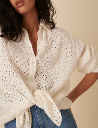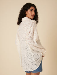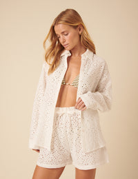 Your summer staple. This white button-down shirt is finished with all-over broderie. Wear with the matching shorts for an effortless set.