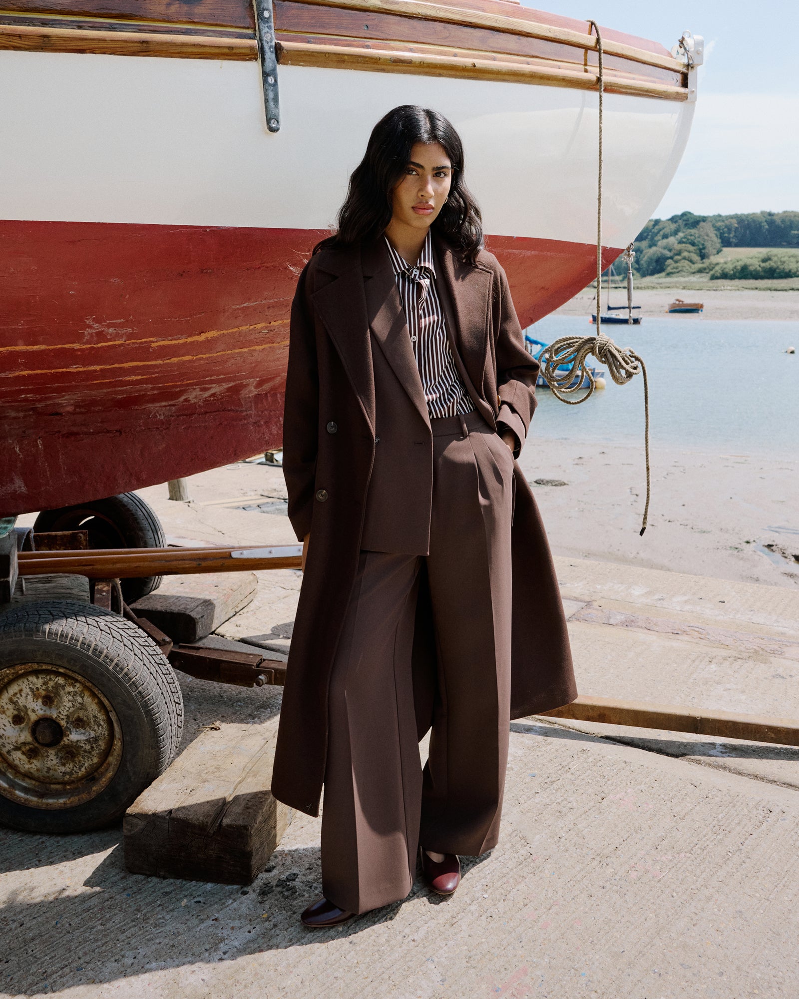 This season’s edit is designed for cooler days and layering weather. Think dresses that slip under coats, knits that go chunkier as winter sets in, and denim made for endless wear. Fabrics are inviting, with heritage wools, alpaca blends and soft cashmere, while colours that hold like a warm embrace in deep berry, chocolate and earthy tones, lifted by icy pastels and winter brights. Trench coats and tailoring return, gingham makes a cold-weather comeback, and accessories pull everything together.