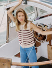 Soft-to-touch. In beige with brown stripes, this smooth vest features a relaxed fit that's perfectly for a pull-on layer. Keep a few buttons undone for easy styling.