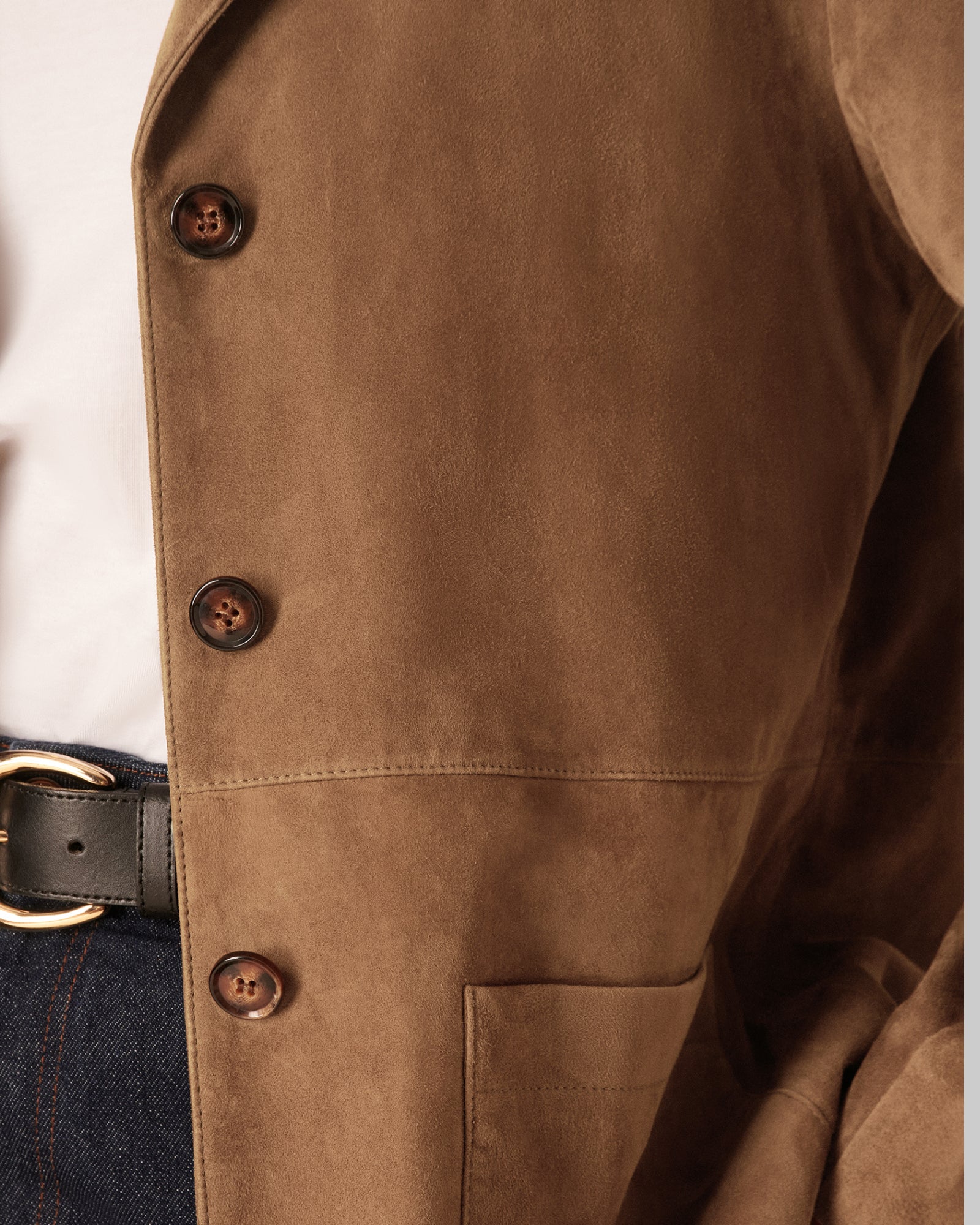 “Suede has such a soft, supple feel – it’s the texture that instantly elevates even the simplest outfit. As members of the Leather Working Group, a not-for-profit organisation committed to reducing the impact of leather manufacturing, from chemical use to water and energy efficiency, we're proud to say that every suede piece is crafted in LWG-certified tanneries. We’ve chosen enduring shades: warm camel, rich chocolate brown and classic black, to create forever pieces that age beautifully over time. Read more about the suede we use here.”