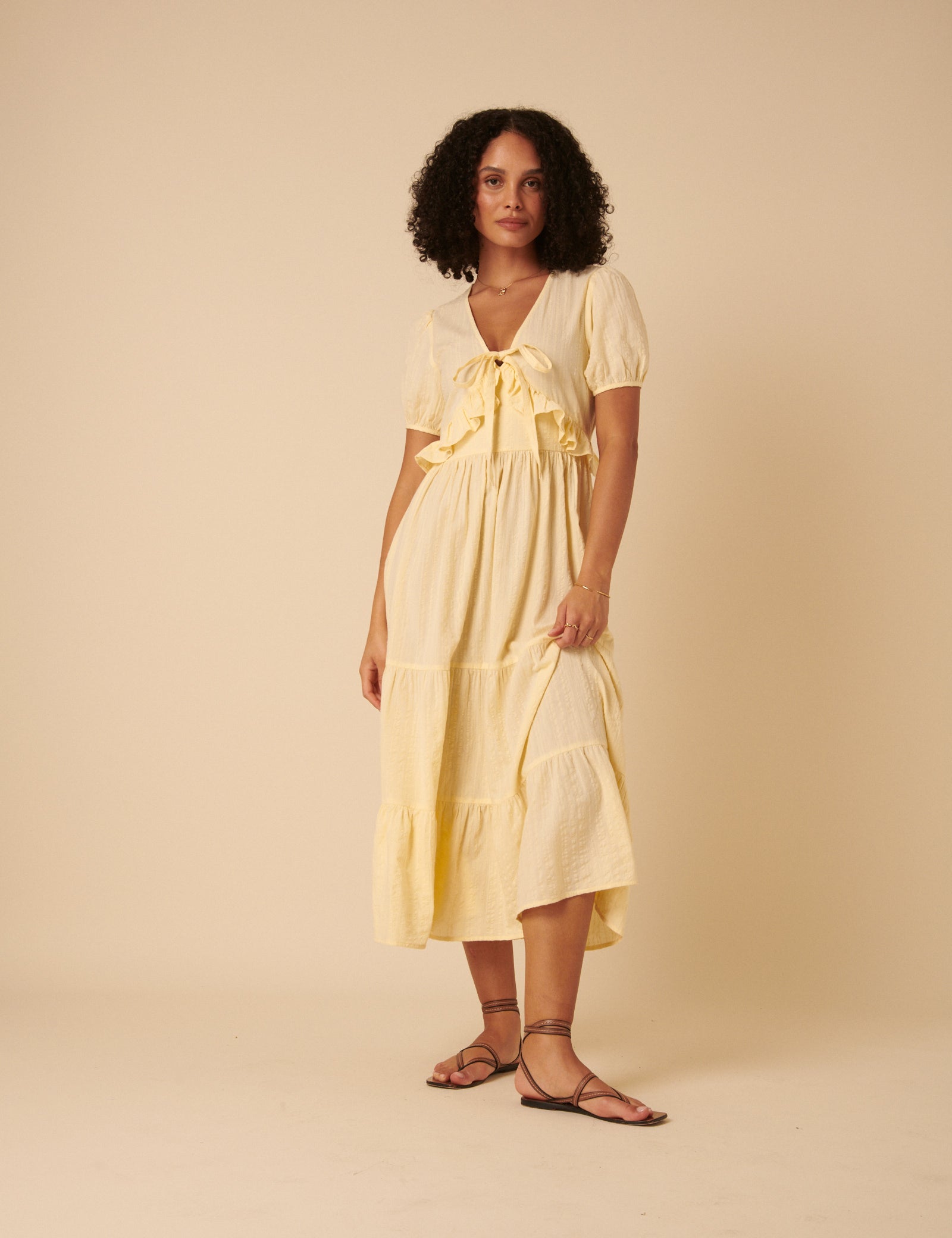 Yellow Ditsy Floral Saffy Midi Tea Dress