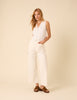 Blue High Rise Scallop Trim Cropped Palazzo Jeans