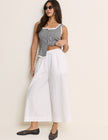 Crafted from pure cotton, these white palazzo trousers sit high on the waist with elasticated detail for a comfortable fit. They fall to an exaggerated wide leg with side pockets.