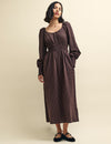 Brown Gingham Ankita Midi Dress