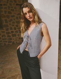 Black Gingham Tie Front Waistcoat