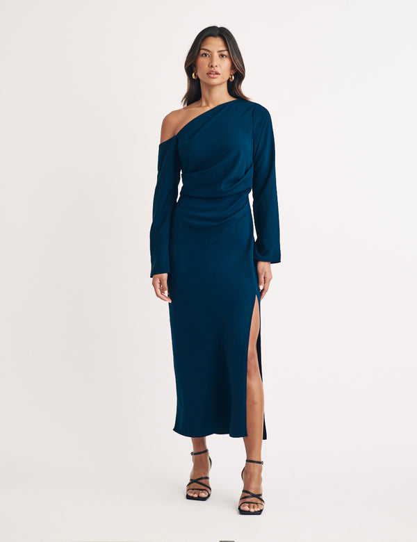 Burgundy Twist Shoulder Bethany Jersey Midi Dress