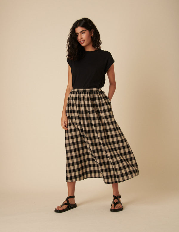 Black Gingham Midi Skirt
