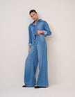 The Westbourne Wide: the jeans you'll live in. Coming in a mid-wash blue, these non-stretch jeans feature a mid-rise fit that fall to a fluid wide leg. They're finished with pleated side seam detailing for soft movement and volume.