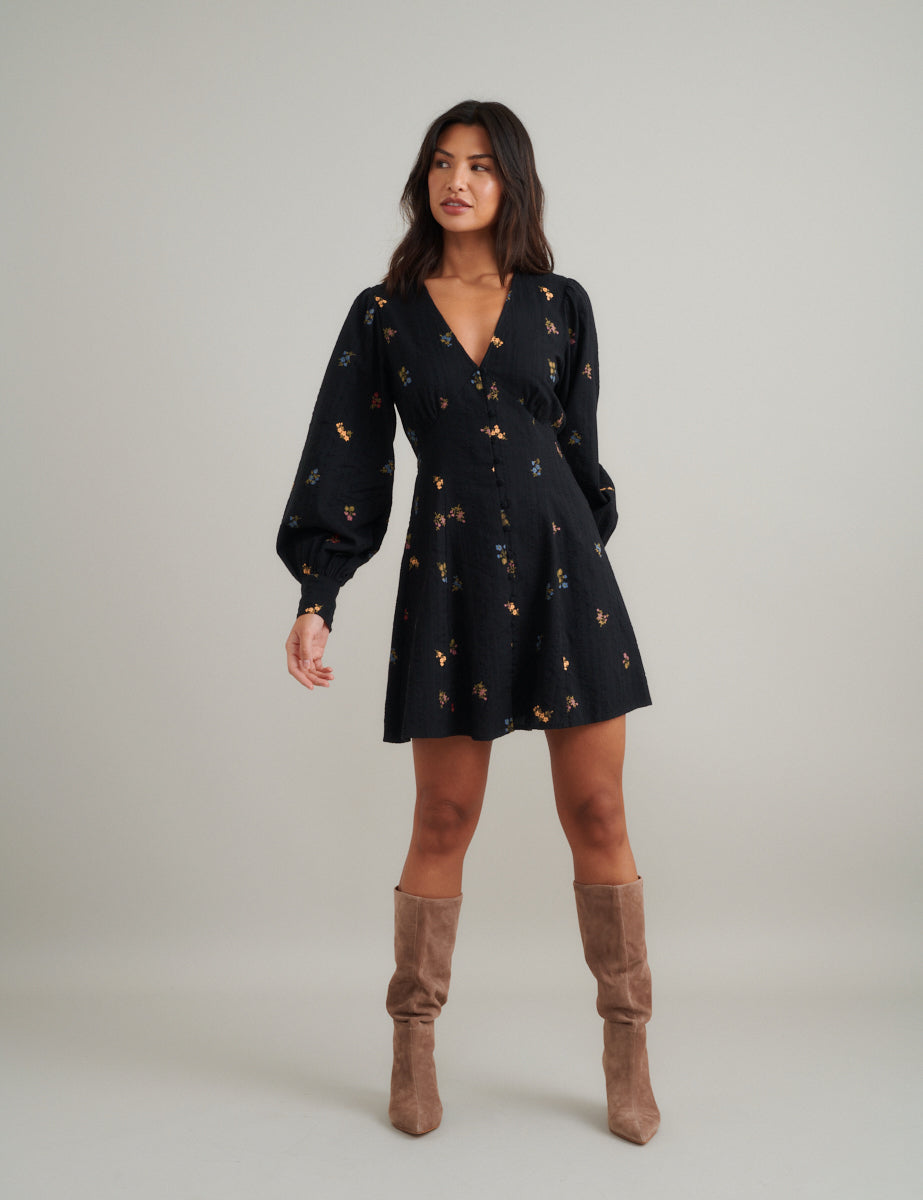 Black Floral Cord Kendall Mini Dress