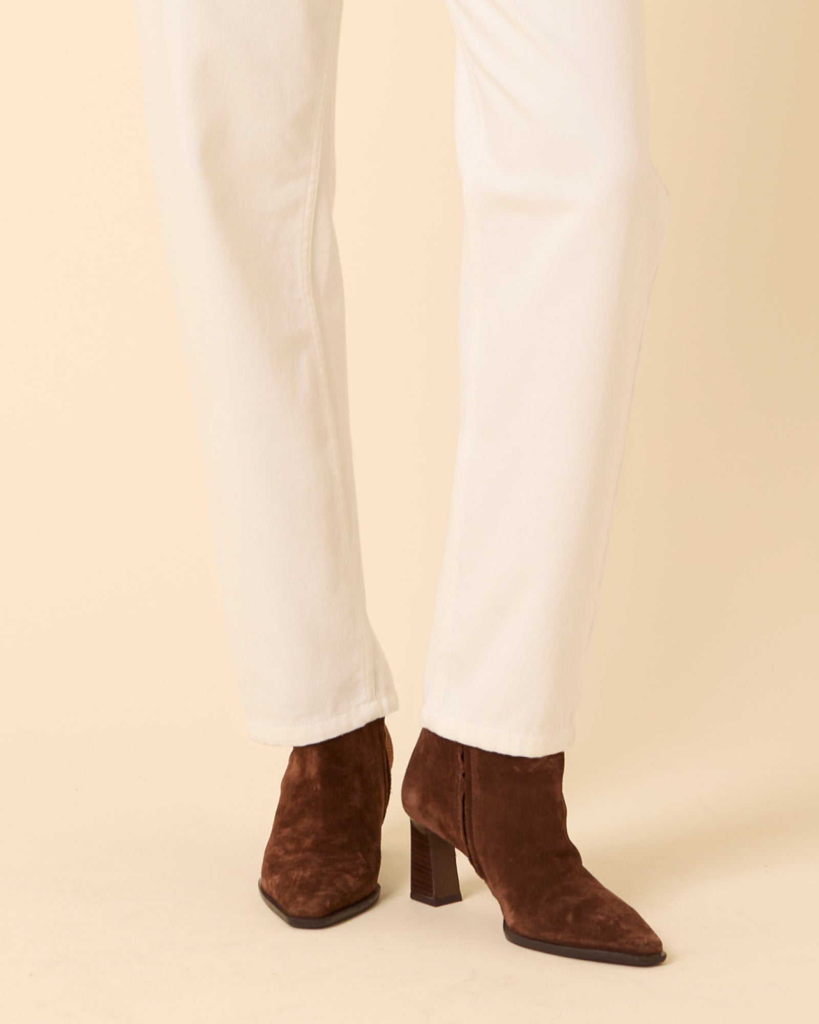 The Putney Barrel: for those easy days. Coming in white, these jeans feature a fitted high-rise that falls to a subtle, curved barrel leg for an effortless look.