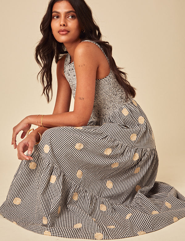 Black Gingham Sleeveless Tiered Charlie Midi Dress