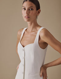 Walk down the aisle in style with the NC bridal party collection. One for the modern brides, Jaia is a so-now waistcoat with a romantic sweetheart neckline. We love her covered buttons and welt pockets.