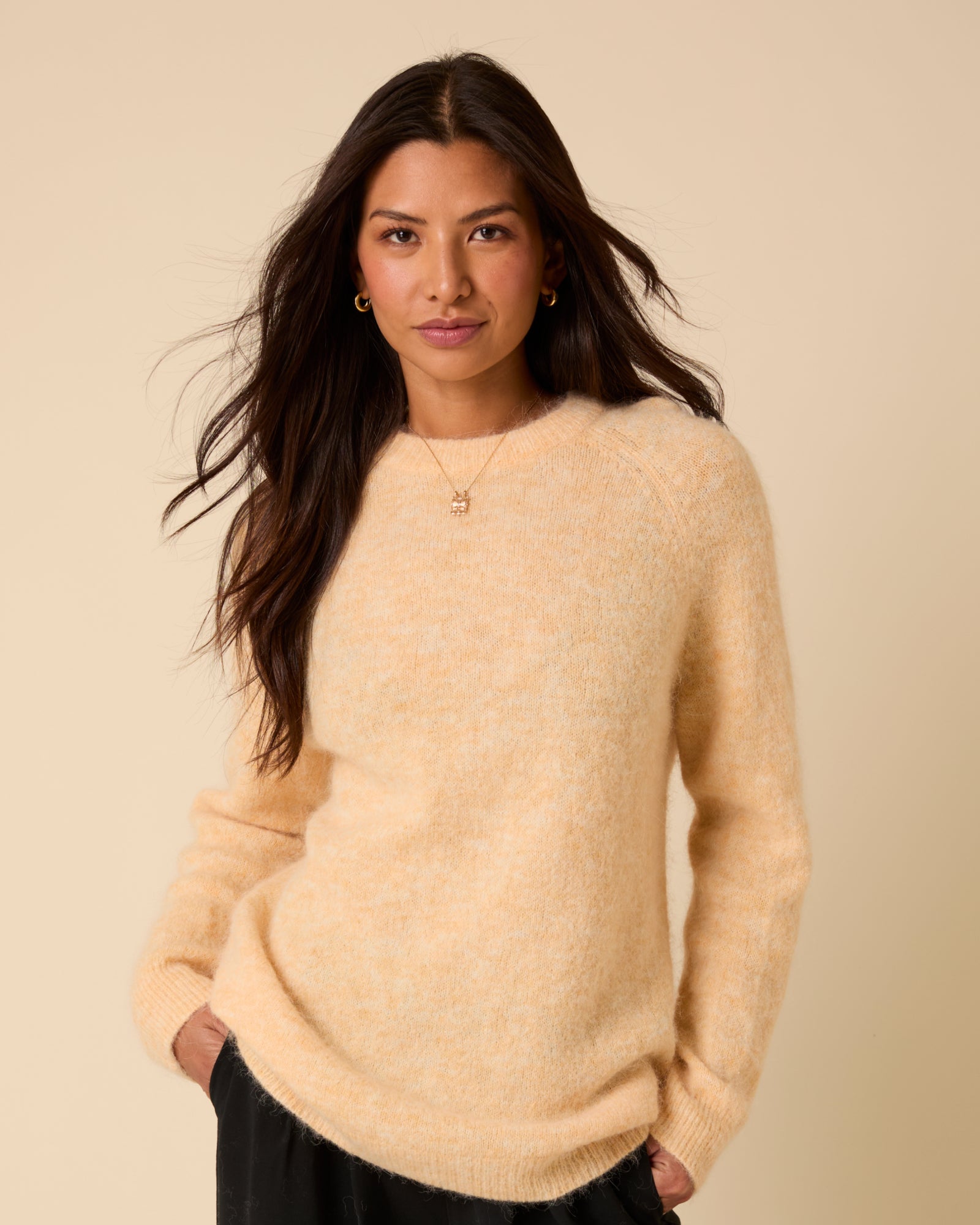 Coming in butter yellow, this super-soft jumper is designed with a relaxed, oversized fit for easy layering. It's elevated with a ribbed trim finish.