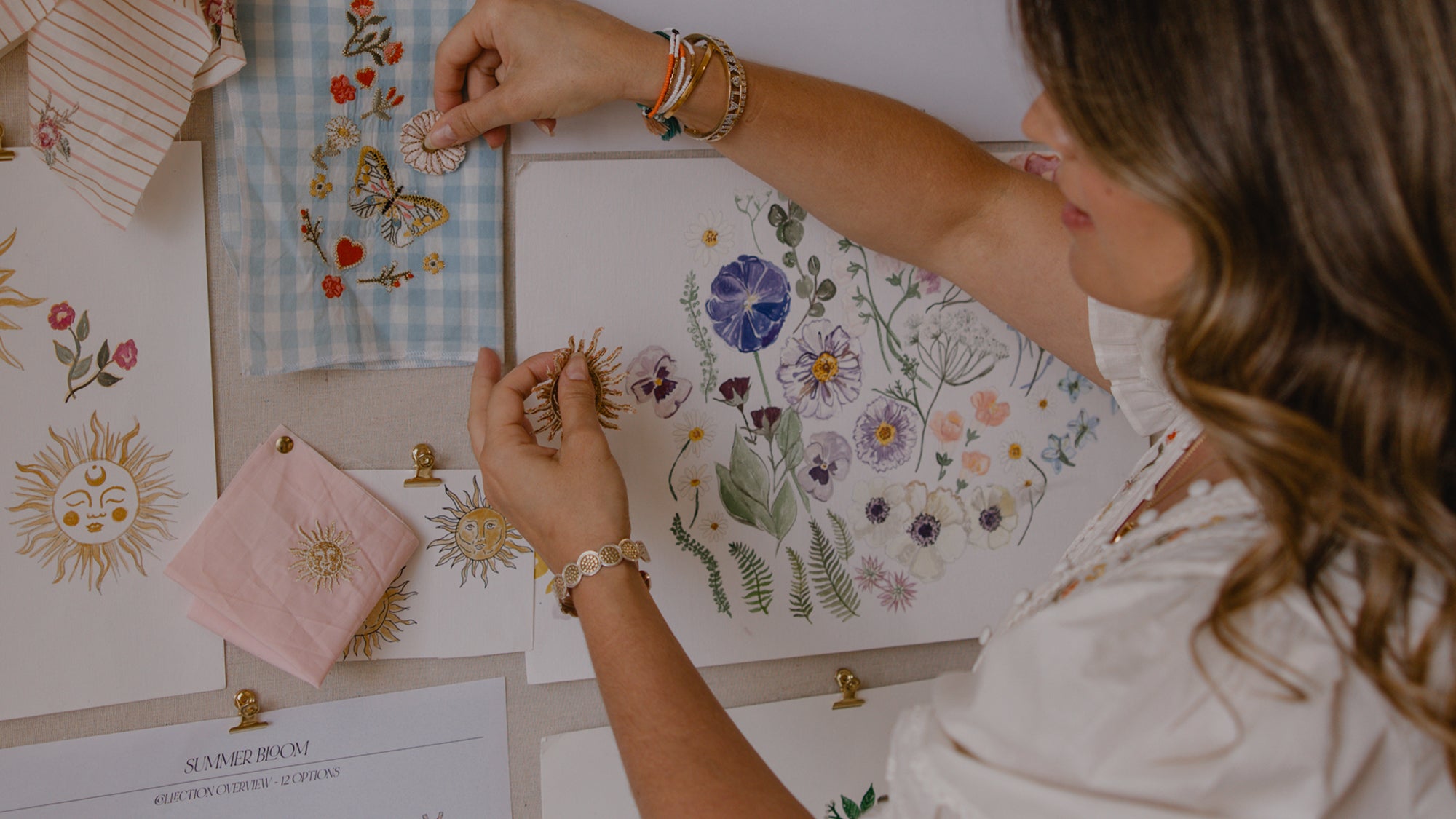 Elizabeth Scarlett is a London-based brand known for intricately embroidered accessories brought to life through Elizabeth’s original hand-painted artwork. Her signature style combines delicate detailing with a thoughtful, keepsake feel.