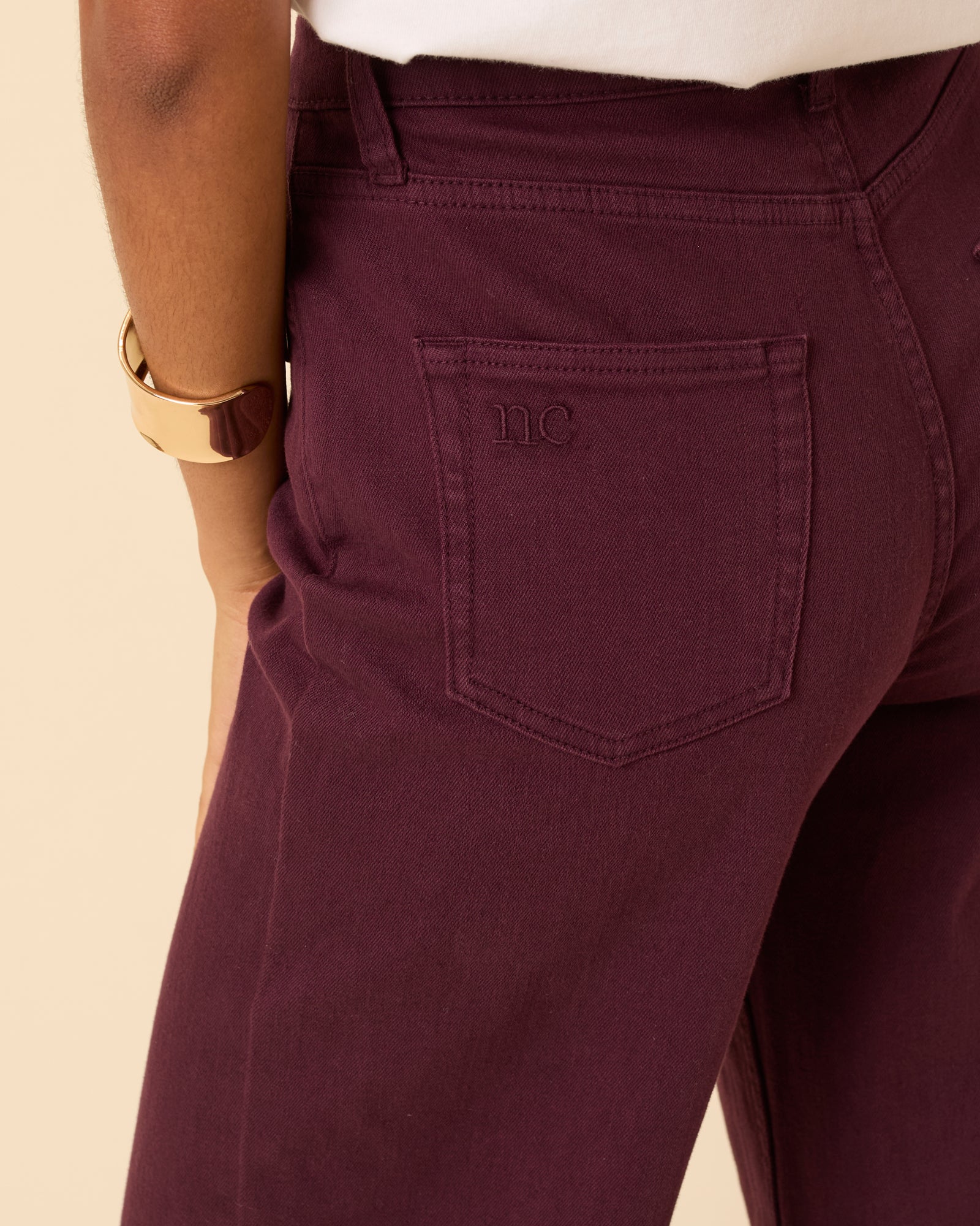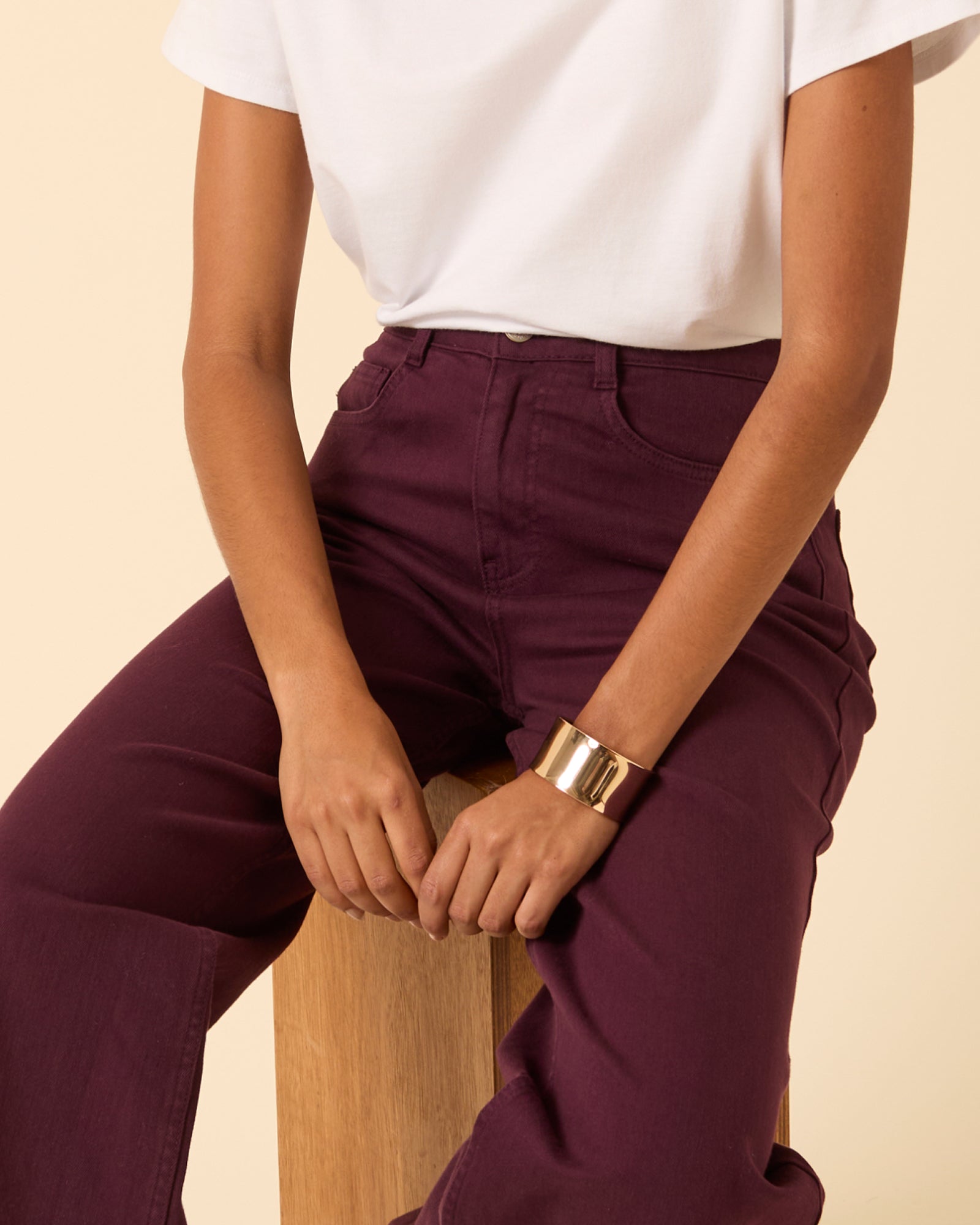 The Soho Wide: for your Monday to Sunday. Coming in burgundy, these subtle stretch denim jeans feature a fitted high-rise that falls to a wide leg for all-day comfort.
