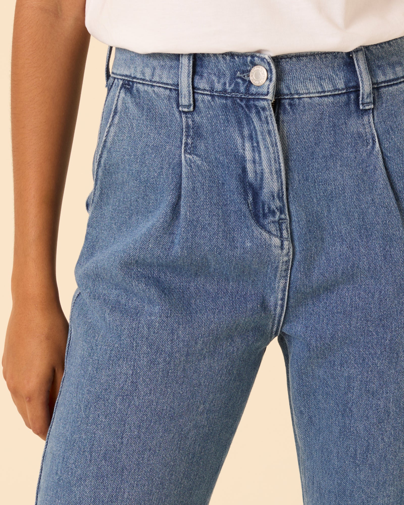Meet your new favourite jeans. Coming in a light-wash blue and non-stretch denim, these straight leg jeans feature a high-rise and front pleats for denim with a difference.
