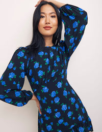 Nothing says Nobody's Child like a pretty floral dress, and the petite Serena is a perfect choice. Featuring a flirty mini frame, it's designed with a black base contrasted with blue flowers and has long sleeves and a slightly fitted waist to emphasise the silhouette. Ruffles decorate the hemline and cuffs while button fastening to the rear completes. Wear yours with anything from heels to trainers.