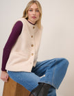 In soft borg, this cream gilet features a round neckline and chunky mock horn buttons. Cut to a relaxed fit, it’s finished with patch pockets.