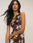 Chocolate Brown Floral One Shoulder Sloane Maxi Dress