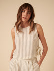 Not just another stripe. With a round neck and side tie detail, this striped top works hard solo or with the matching trousers.