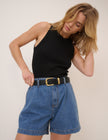 Mid Wash A-Line Denim Shorts