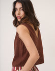 Crafted from a linen-rich blend, this chocolate brown top features a V-neckline and thoughtfully wider straps. Cut to a cropped, relaxed fit, it's finished with a matching V-back.