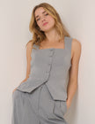This grey pinstriped waistcoat features a square neckline and a button front. Cut to a longline close fit with a tie-back detail for the perfect fit, it's finished with a split hem. Style with the matching trousers.