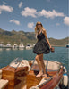 Big on style. This black mini dress features a structured bodice and a bubble hem skirt, made for turning heads from day to night.
