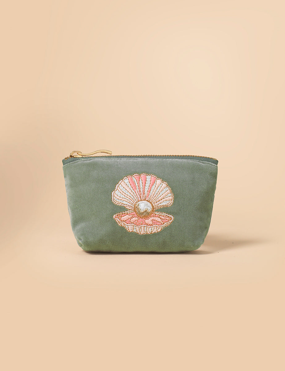 Green Velvet Small Makeup Bag