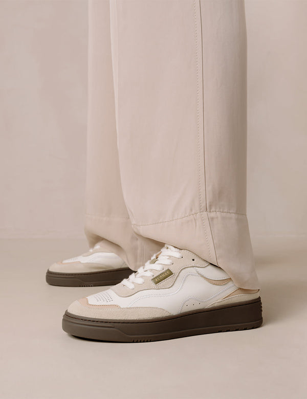 Cream And Tan Leather Trainers