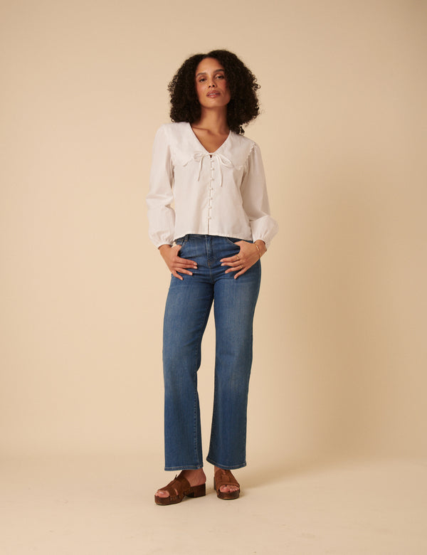 Black Floral Whipstitch Pointelle Scoop Neck Top