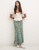 Our sell-out Mila skirt is back in green floral satin. It’s a body-skimming cut that flares at the hem. Team her with chunky boots or trainers.