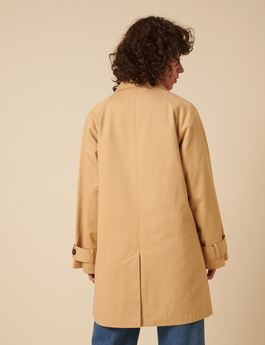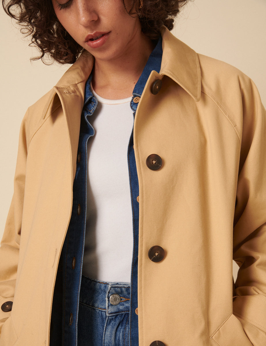 Our bestselling coat is back. This classic car coat is perfect for in-between weather, now in a timeless tan shade. Layer it over everything, because it goes with everything.
