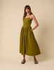 In a fresh green hue, this strappy midi dress features a fitted bodice, skinny straps and a swishy drop waist skirt, she’s made slip on and feel good in.