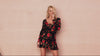 Dark florals meets day dress. With spaghetti straps, tie-back detail and a swishy skirt, this little black dress is summer-festival ready.