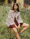 Your city-to-cabin jacket. In a brown and blue check, this quilted jacket features a frill collar and patch pockets. We love its brown button front and relaxed fit that’s perfect for warm layering.