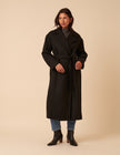 Designed in a double-breasted wrap style, this black wool-blend coat features a classic collar and waist-cinching belt. Cut to a relaxed fit, it's finished with a button front and side pockets.