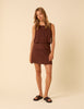 Style made simple. Coming in chocolate brown, this mini skirt sits high on the waist and falls to an easy, A-line shape. We love it for your everyday.