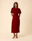 Red Velvet Puff Sleeve Zoi Midi Dress