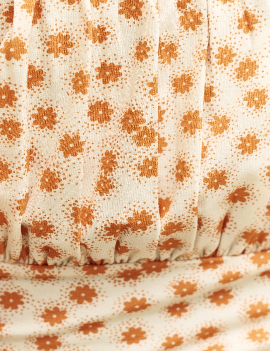 White Ditsy Floral Ruched Bodice Jersey Top